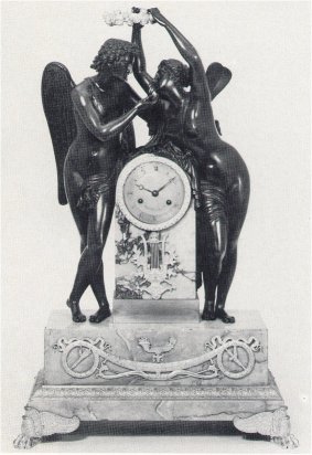 nicht unerheblich auf die Wien besaß seit dem späten 18. Jahrhundert eine von Kaiser Joseph II. gegründete Erzschneideschule, Ausgangspunkt der einsetzenden Bestrebungen, Bronzen zu Beginn des 19. Jahrhunderts herzustellen, die den Pariser Vorbildern so ähnlich wie möglich sein sollten. Doch die Ergebnisse erreichten in der künstlerischen Gestaltung und in der Qualität der Vergoldung nicht den vergleichbaren Rang, um zu einem bedeutenden Exportartikel zu werden. Seit 1807 bestand in Mailand eine königliche Erzgießerei unter der Leitung Luigi Manfredinis, die auf hohem technischen und gestalterischen Niveau produzierte, aber wohl so teuer und anspruchsvoll war, dass über befreundete Höfe hinaus keine Verbreitung der Bronzewaren erfolgte. Auch in München suchte man nach dem Wiener Kongress 1814 eine eigene Bronzefabrikation mit staatlicher Förderung aufzubauen. Aber mit dem Ende der Ankäufe für die Neubauten der Residenz unter Ludwig I. gerieten gegen 1835 - 40 die unwirtschaftlich arbeitenden drei Bronzemanufakturen in finanzielle Schwierigkeiten und stellten den Betrieb ein. Auch in London, Stockholm, Neapel, Rom, Madrid und St. Petersburg wurden in kleinen Serien oder als Einzelstücke Pendulen in Bronze gefertigt, ohne aber größere Verbreitung oder wirtschaftliche Bedeutung zu erlangen. Das Pariser Vorbild blieb im 19. Jahrhundert, wie auch auf vielen anderen Gebieten der Mode und des Luxus, stets tonangebend. |