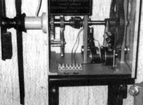 Die links abgebildete Turmuhr wurde 1899 von der Firma J.F.Weule in Bockenem - Harz gebaut. Es ist nur ein Gehwerk und wurde in kleinen Kirchen oder in kleinen Bahnhöfen eingesetzt. Die Uhr hat eine Grahamhemmung. Durch eine Federkonstruktion im Walzenrad läuft die Uhr während des Aufziehens präzise weiter. Im Pendel ist eine Eule gegossen. J. u. F. u. W. u. Eule = Weule