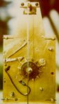 Schloßscheibe auf Bronzeglocke. Auslösung über Storchenschnabel-Hebel.
