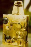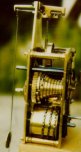 Messingvollplatinenwerk mit gedrehten Pfeilern und hoher Spindelhemmung. Gehwerk über